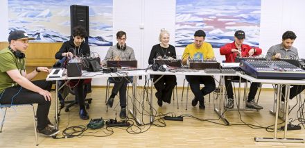 Es entsteht ein zeitgleiches Erfinden und Ausführen von elektronischer Musik, mit dem Ziel, Kompositionen zu interpretieren und als Ensemble live zu präsentieren.